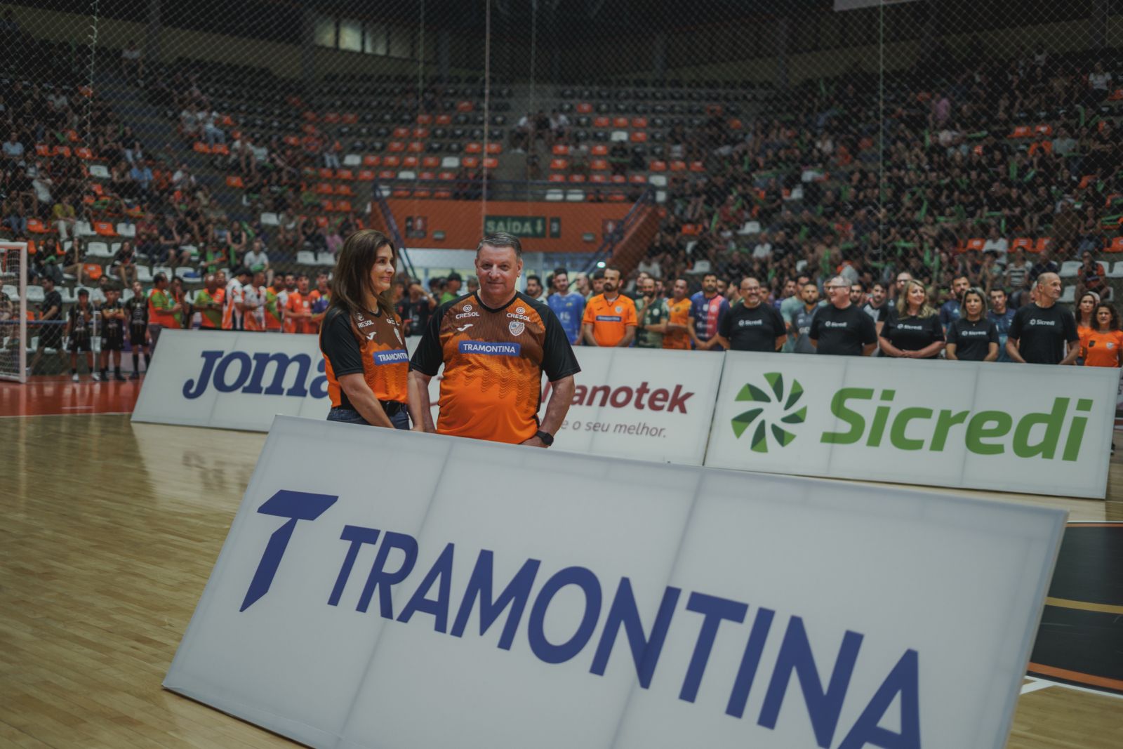 ACBF deu destaque especial aos patrocinadores que foram convidados a entrar em quadra ao lado dos atletas, em um gesto simbólico que reforçou a parceria e o compromisso mútuo. Representantes da Tramontina, Sicredi, Santa Clara, Patrus, Galvanotek, Ortobras e Joma foram ovacionados pelo público, destacando que a força da ACBF vai além das quatro linhas e se constrói também com o apoio empresarial.