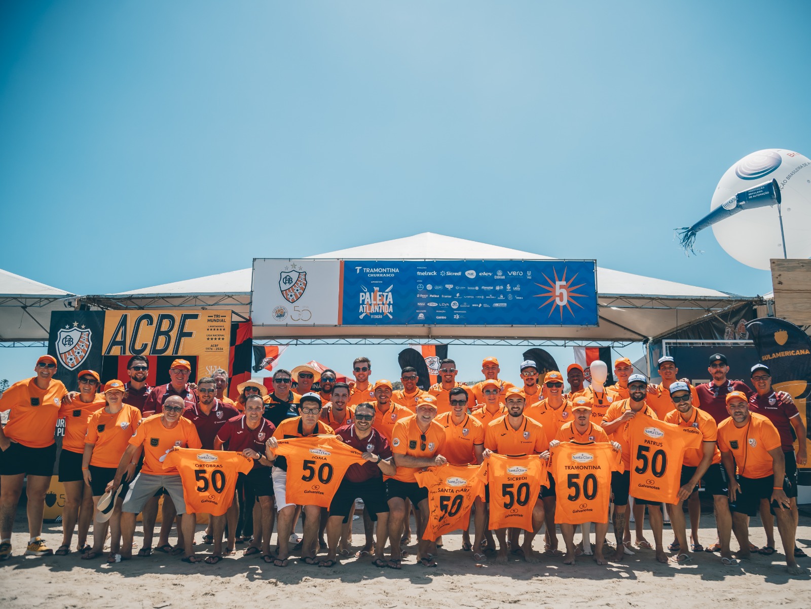 Um dos momentos mais simbólicos foi o Arrastão Laranja, quando todo o elenco da ACBF percorreu a beira da praia visitando os stands dos patrocinadores. Durante o trajeto, foi entregue uma camisa oficial da ACBF autografada por todos os atletas, personalizada com o nome dos patrocinadores e o número 50, simbolizando o cinquentenário do clube.