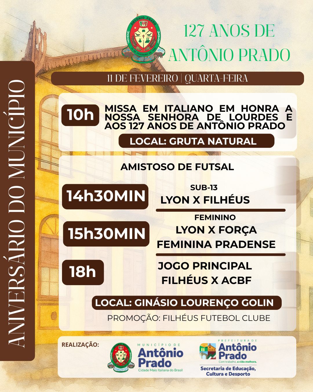 Mais informações redes sociais da Prefeitura de Antonio Prado e na Equipe Filhues.