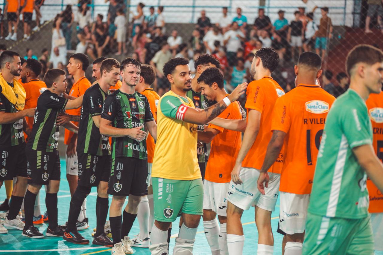 A partida foi disputada no Ginásio Lourenço Golin, em Antônio Prado, diante da equipe do Filheus, e terminou com vitória laranja pelo placar de 5 a 3.